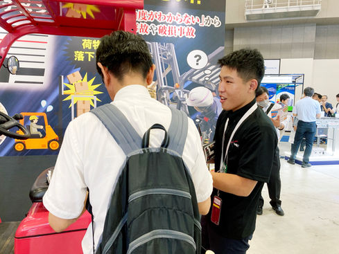全国1,000社以上の製造業、物流業様にご採用いただいているフォークリフトの水平確認アタッチメント『水平チェッカー』を展示。